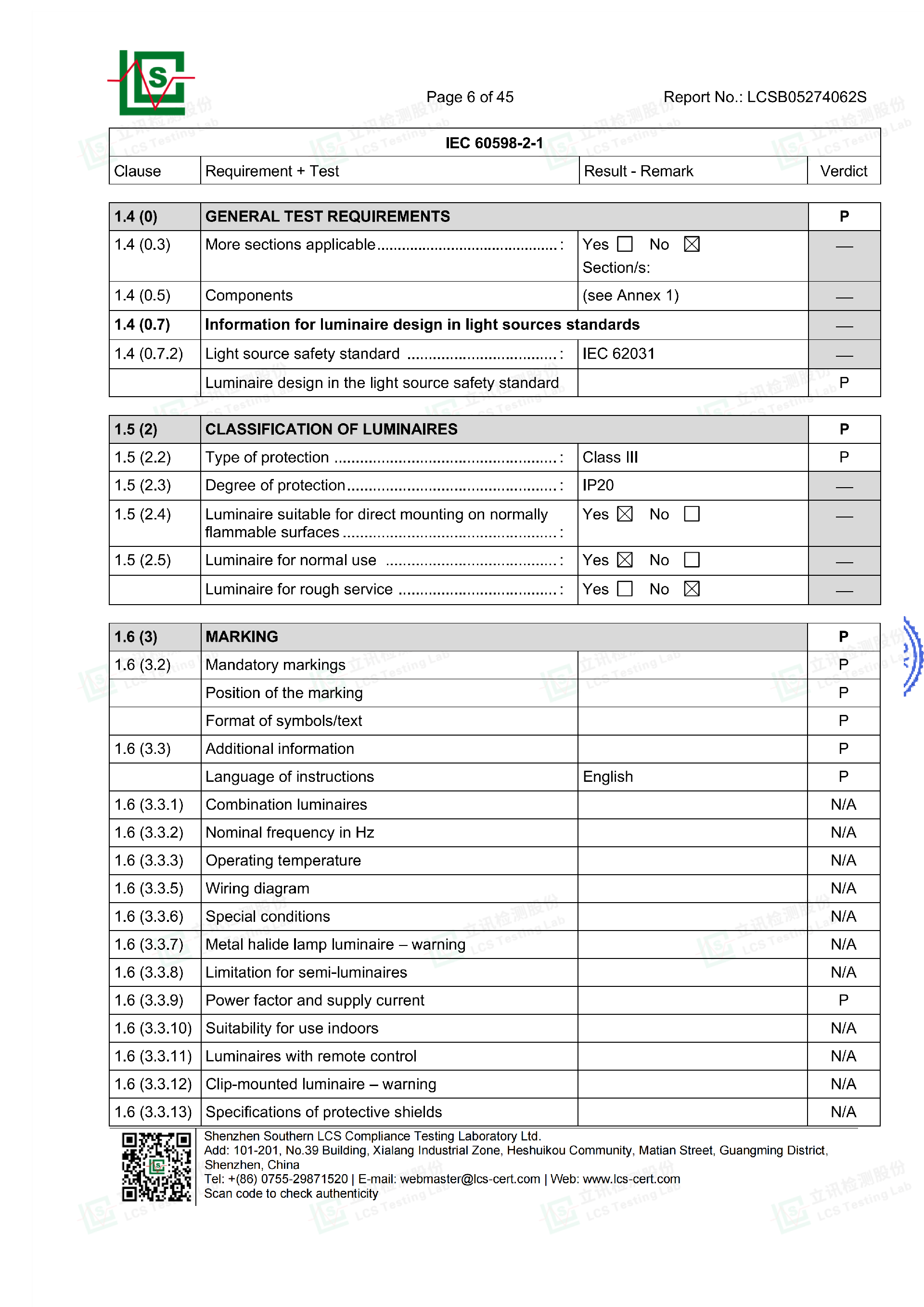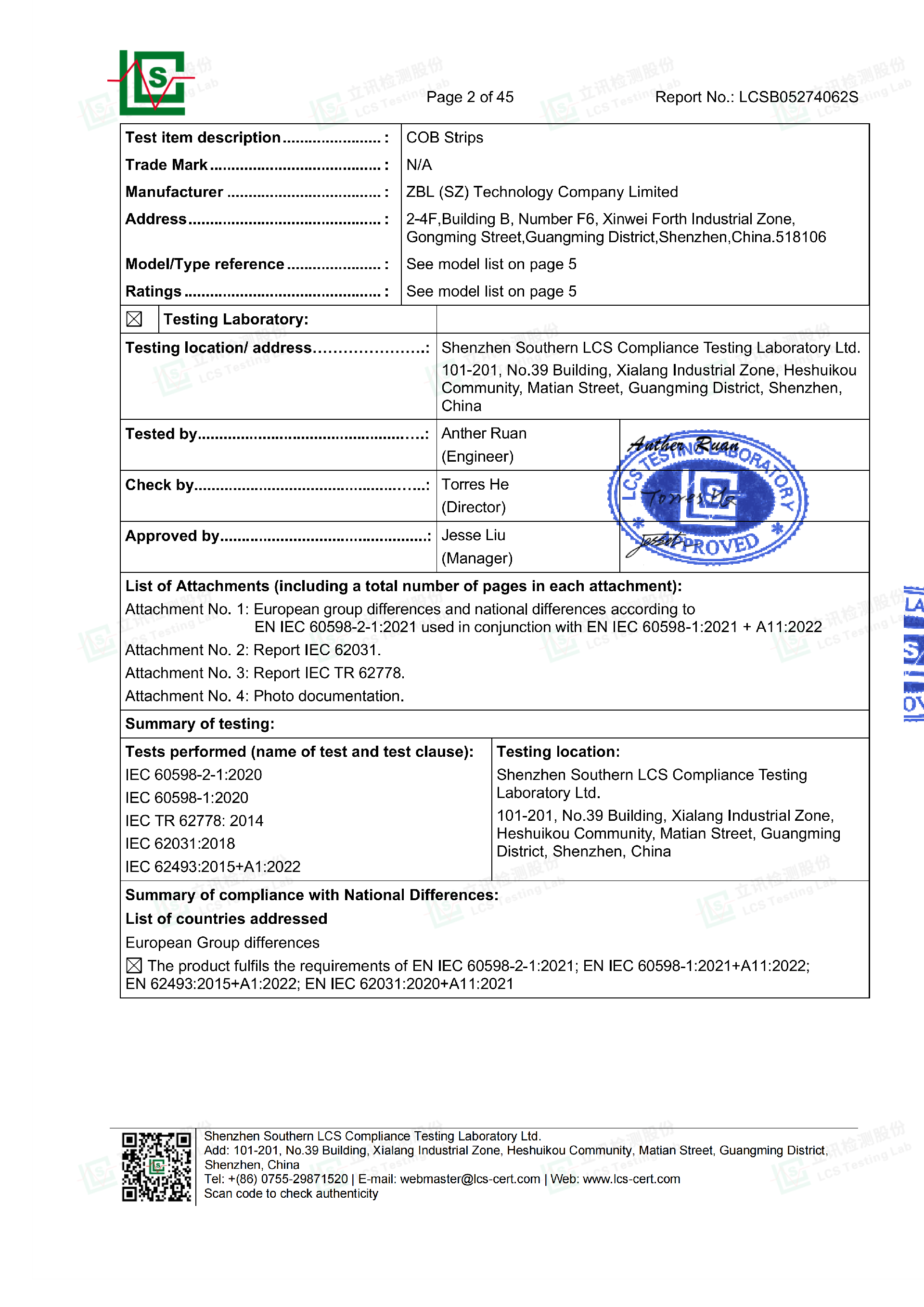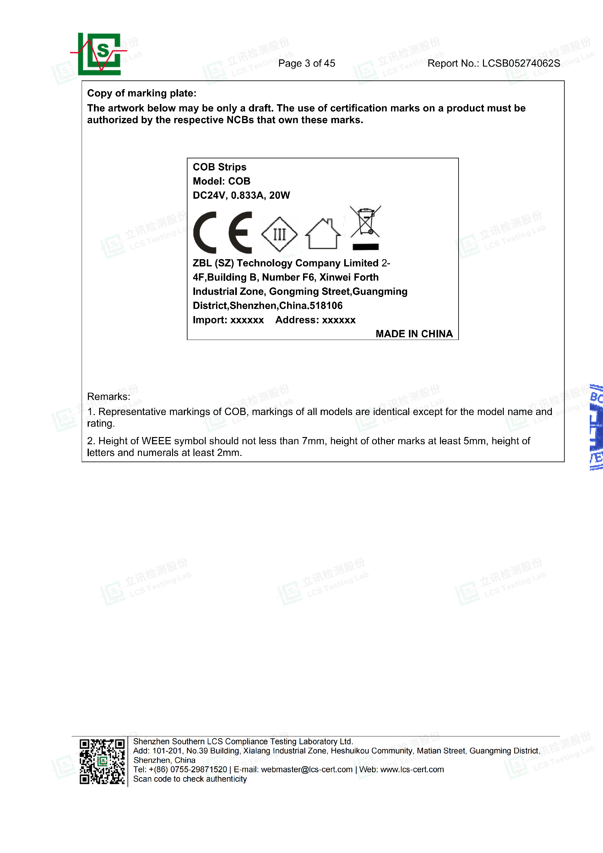 Light Strip Certification