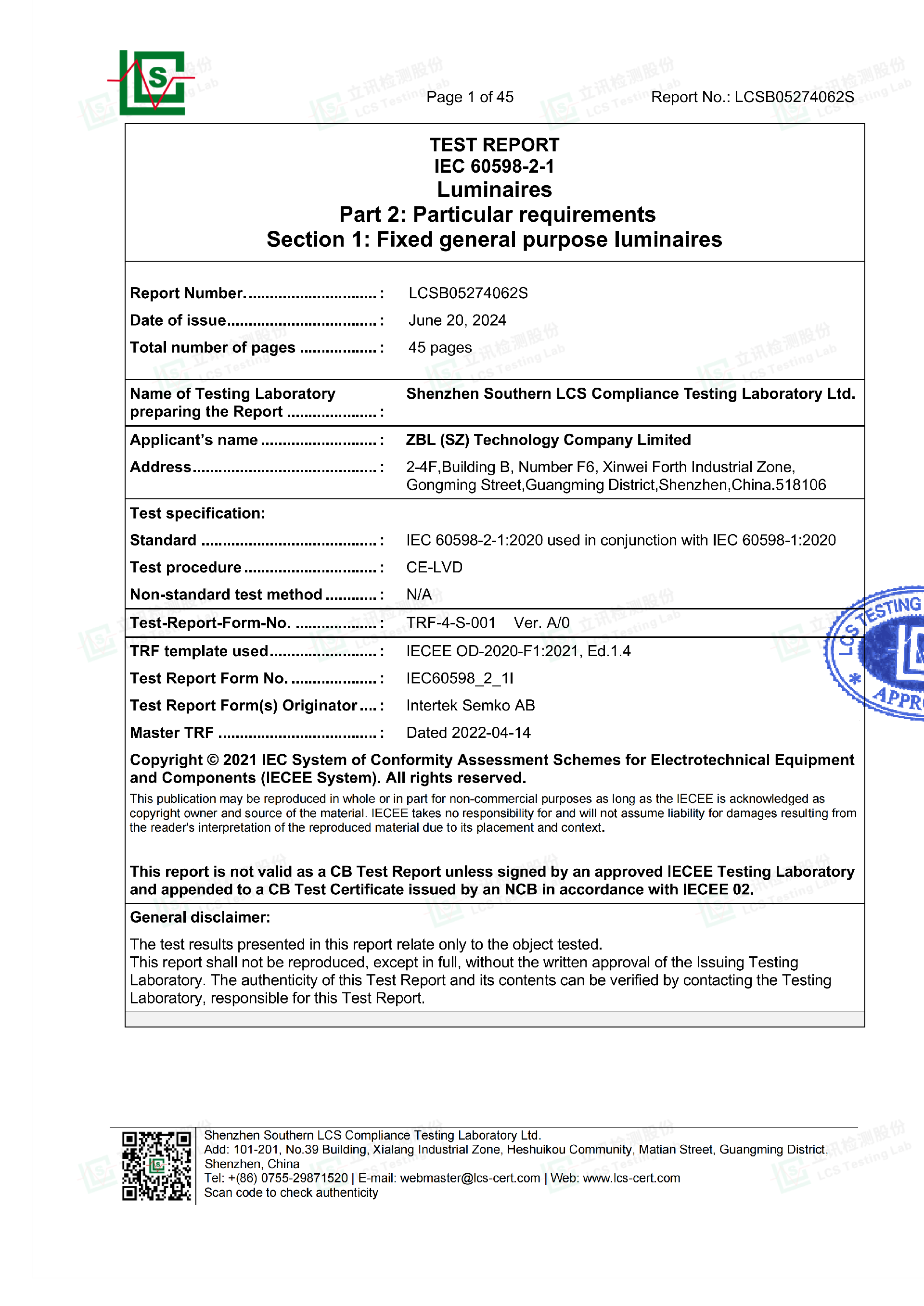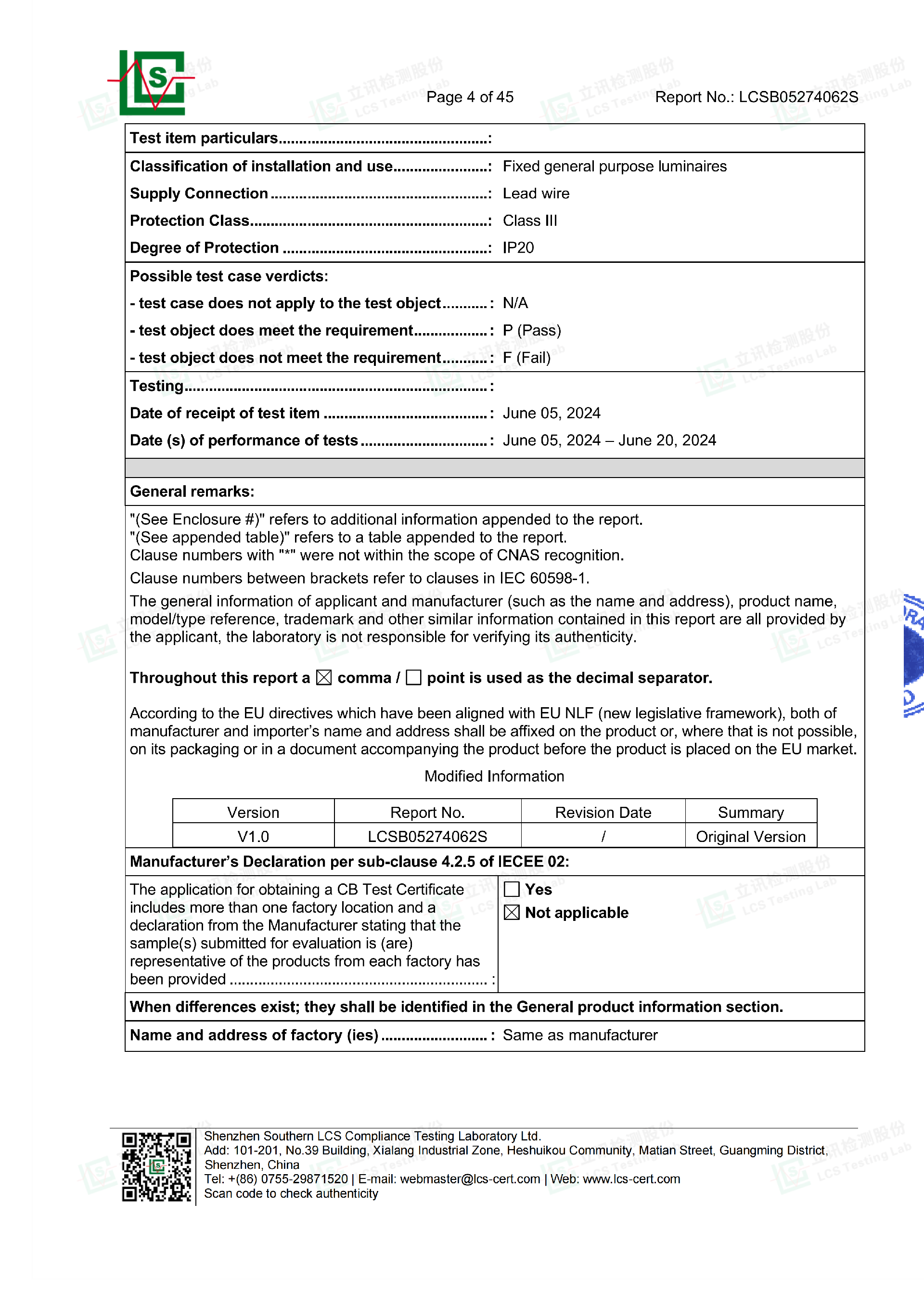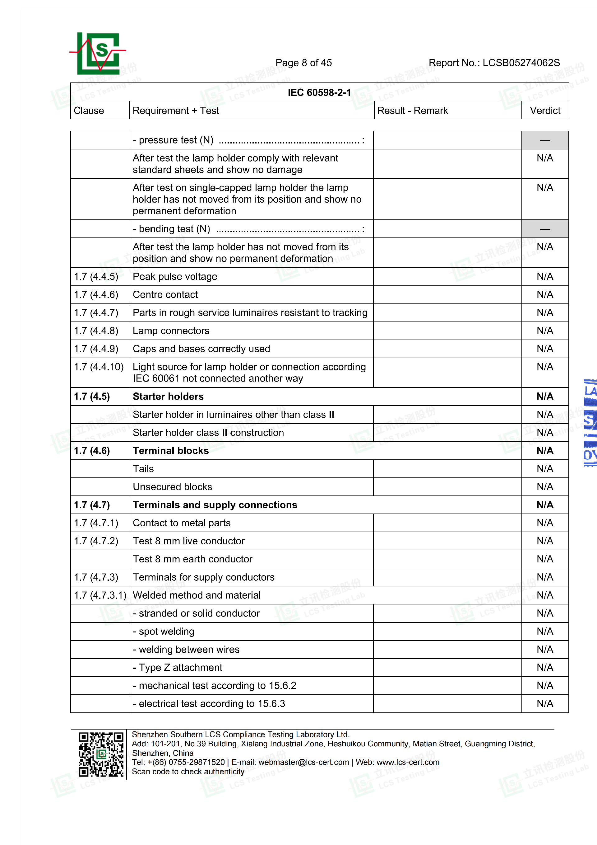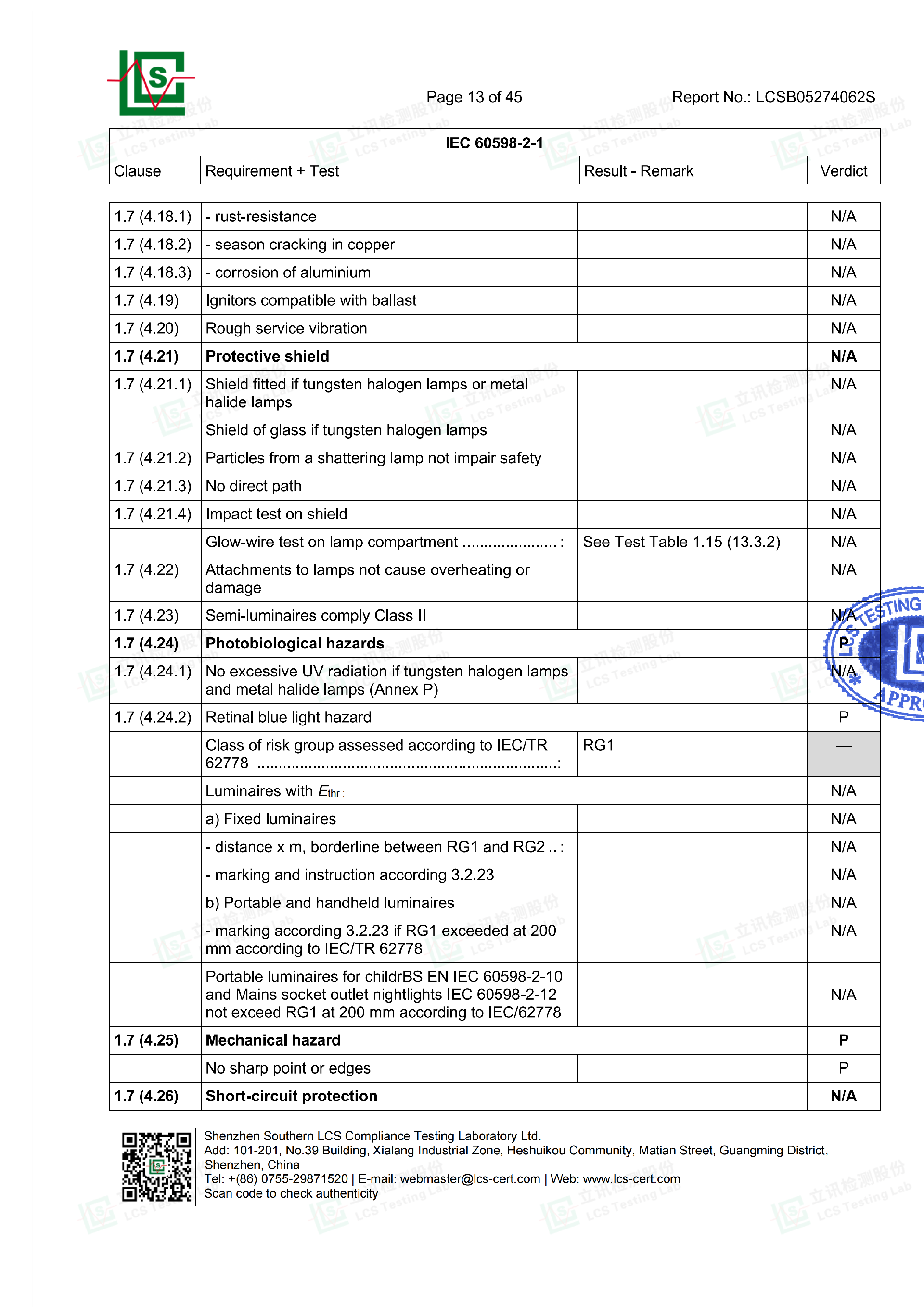 Light Strip Certification